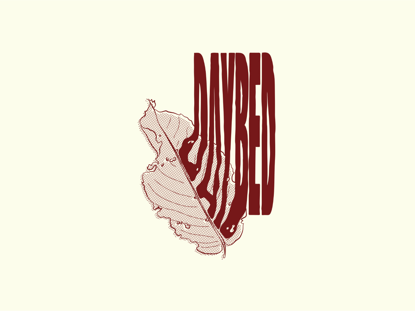 T-shirt design for the band Daybed (Austin, TX) featuring a crunchy leaf with offset halftone shading and some goopy hand-drawn lettering. This illustration was made to support the release of their album Idle Talk.
