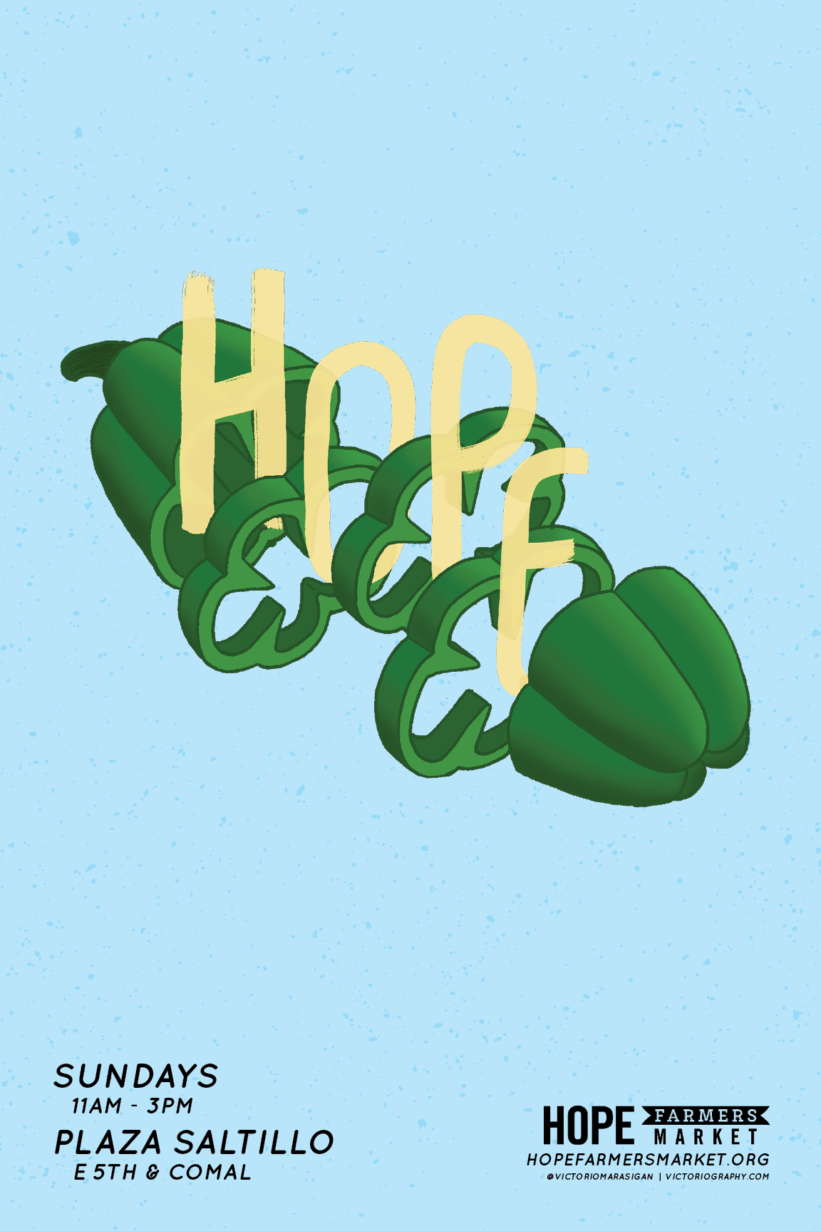 illustrated poster I designed for the HOPE Farmers Market in Austin, TX, for the month of March, 2018